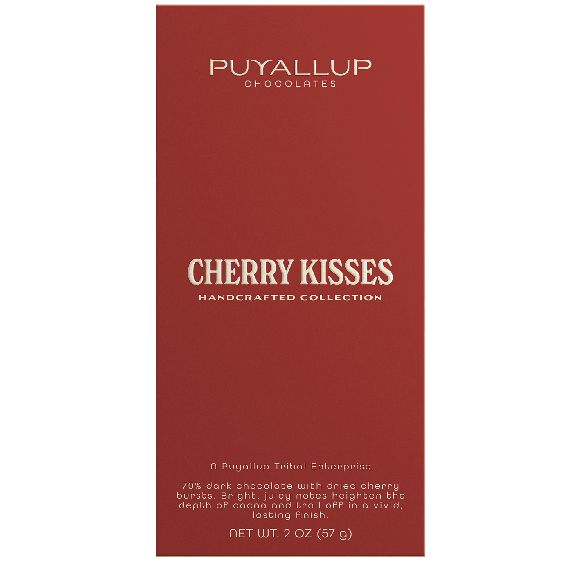 Cherry Kisses brings vibrancy to the richness of dark chocolate. Bursts of dried cherry illuminate the depth of 70% cacao, creating a bright, juicy contrast that unfolds beautifully as it melts. The finish lingers, and is lively, bold, and full of character.