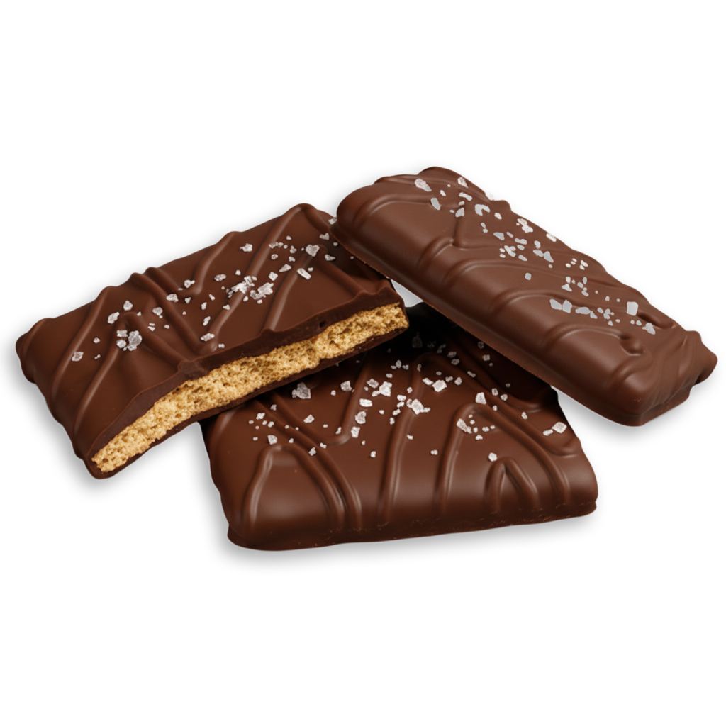 Experience the perfect harmony of sweet, salty, and sophisticated with our Dark Chocolate Covered Graham Crackers.