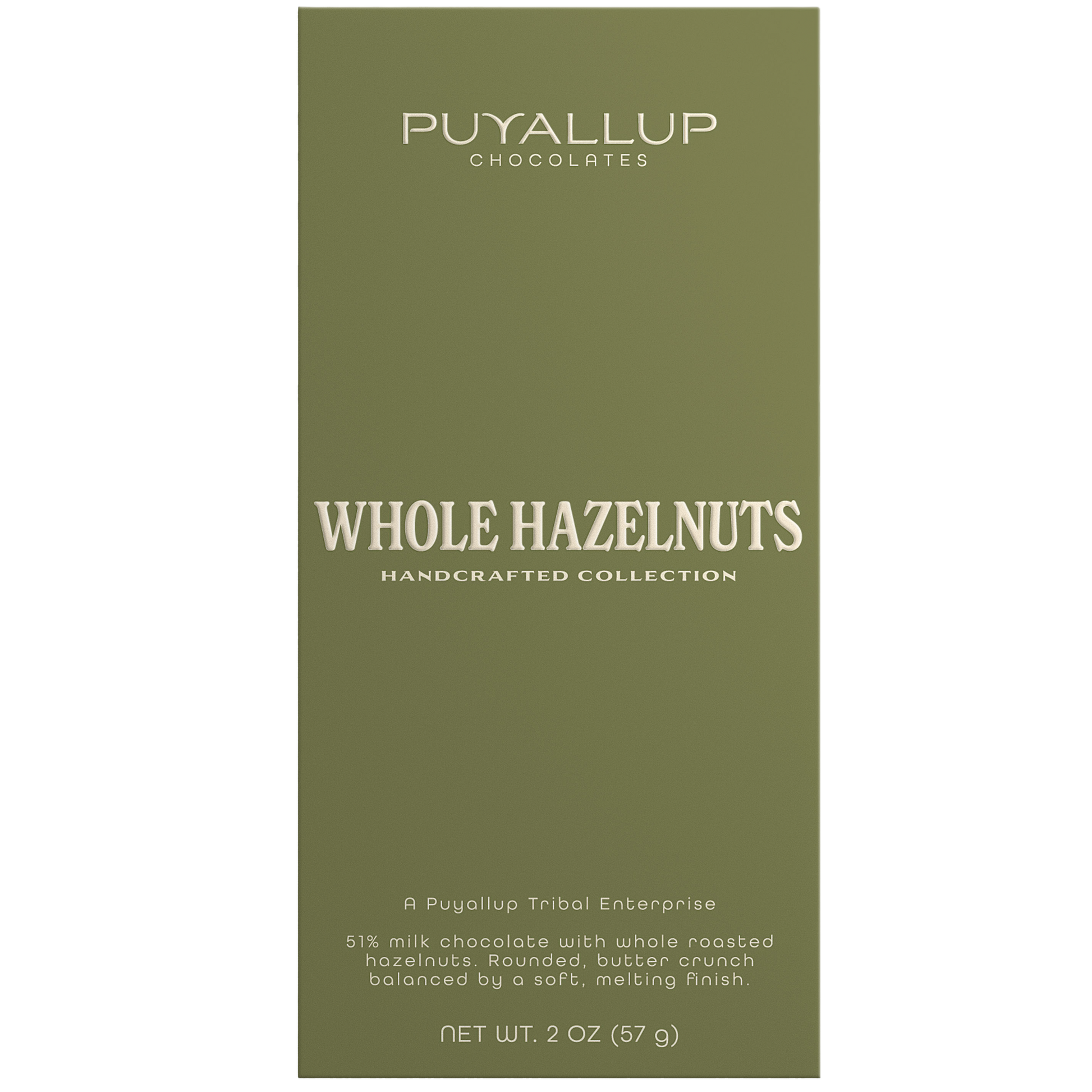 Creamy milk chocolate and whole roasted hazelnuts connect in a bar that feels warm, cozy, and inviting. The hazelnuts offer a rounded, buttery crunch that complements the soft melt of the chocolate, creating a harmony that feels both nostalgic and elevated.